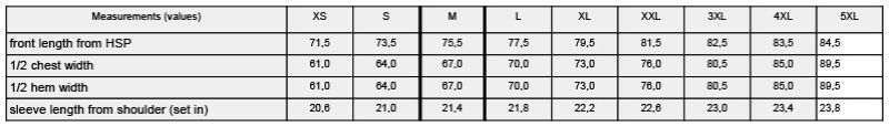 Velikostní tabulka: